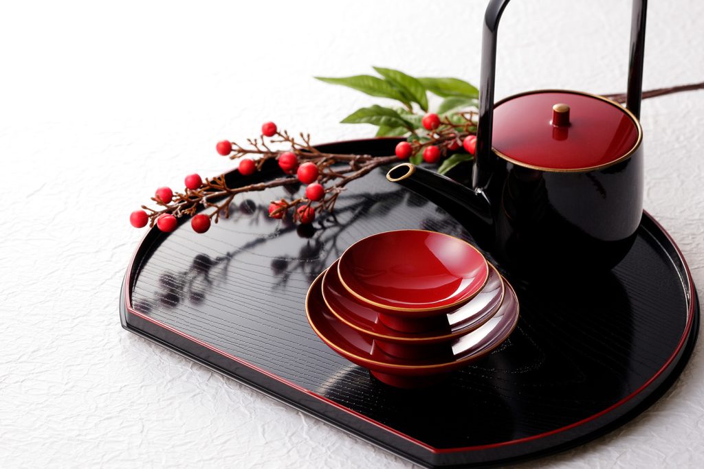 漆器は、木や紙などに漆を塗り重ねたものです。正月に長寿を願って飲むお屠蘇(おとそ)など、お祝いの席で使われるイメージが強いのではないでしょうか。素材としては断熱性が高く、空気や手の温度が日本酒に影響を及ぼしにくいのが特徴です。そのため熱燗は温かいまま、冷酒は冷たいまま楽しめます。また磁器やガラスより丈夫で、落としたりしても壊れにくいです。