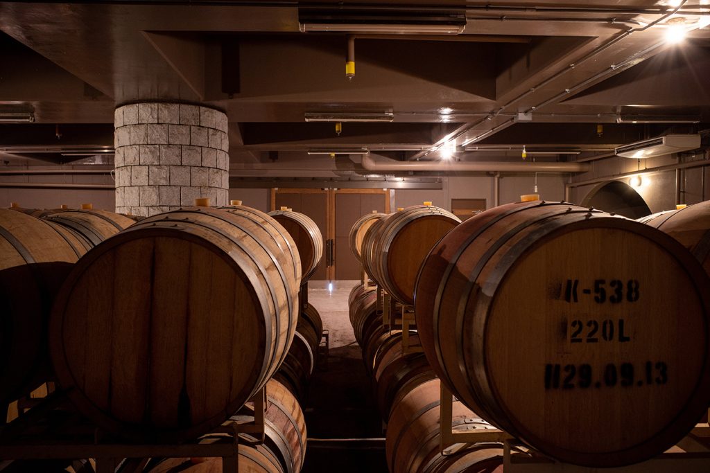 発酵後のワインは、樽またはタンクに移し替えられセラーやカーヴ(ワイン貯蔵庫)で1年〜2年ほど貯蔵され、味わいを整えていきます。