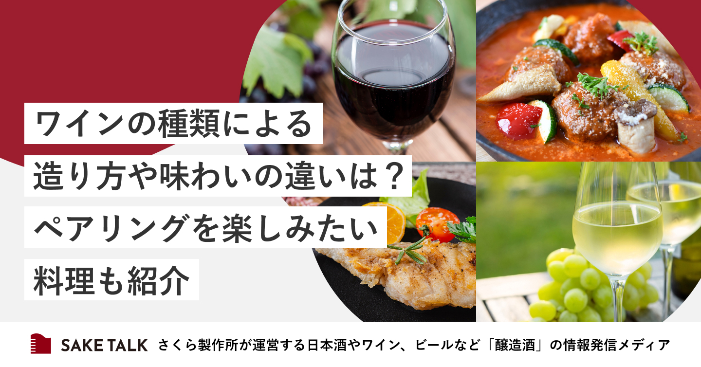 今回は、ワインの種類ごとの造り方や味わいの違い、相性のよい料理をご紹介します。いろいろなワインをもっと楽しむために、この記事の内容をぜひ役立ててください。