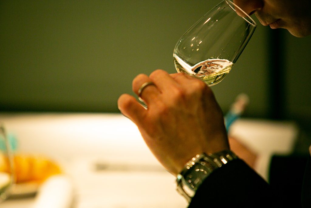 複数のワインの味わいをみるときは、同じ量、同じ時間だけ口にすることがポイントです。目安として、15mlのワインを5秒以上口に含んでみてください。その際、空気も吸い込みながら飲むと香りをより感じやすくなります。