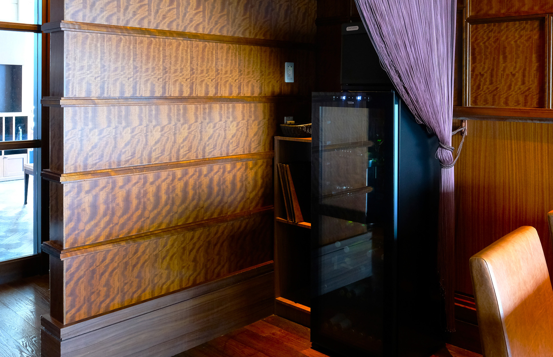 また壁一面に備え付けられた、壮大なワインセラーが組み込まれている最上階の鉄板焼きレストランでは、SB51を使用しています。グラスやソフトドリンクを冷却用として、お客さまから見える場所で使う冷蔵庫としてのデザイン性を考慮しました。さらに上下2温度に分けられるので、グラスとドリンクを個別に温度管理して、冷却温度を変えることで細かな配慮をしています。