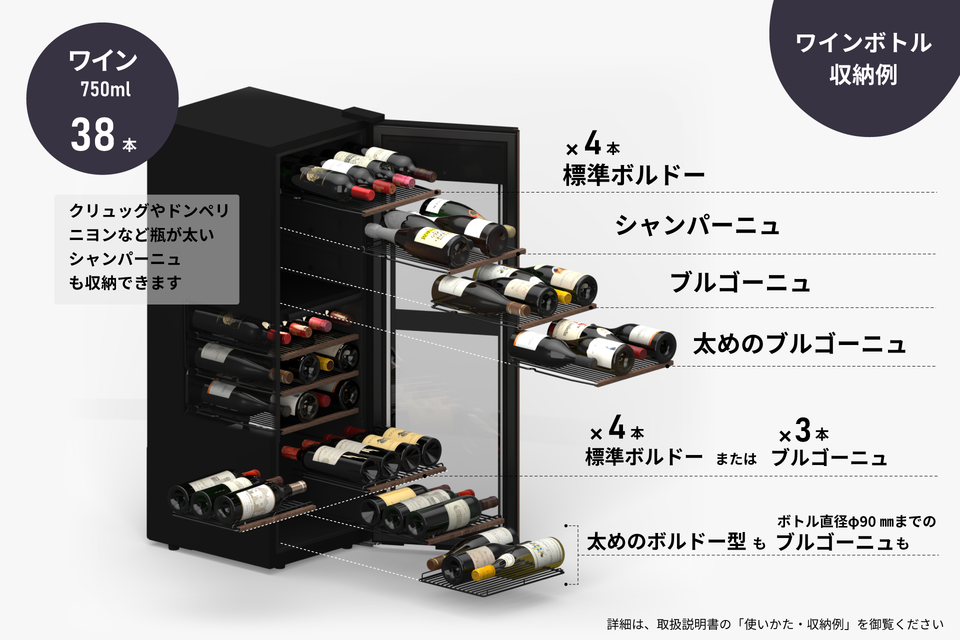 | 収納本数(ワイン) | 38本 | |