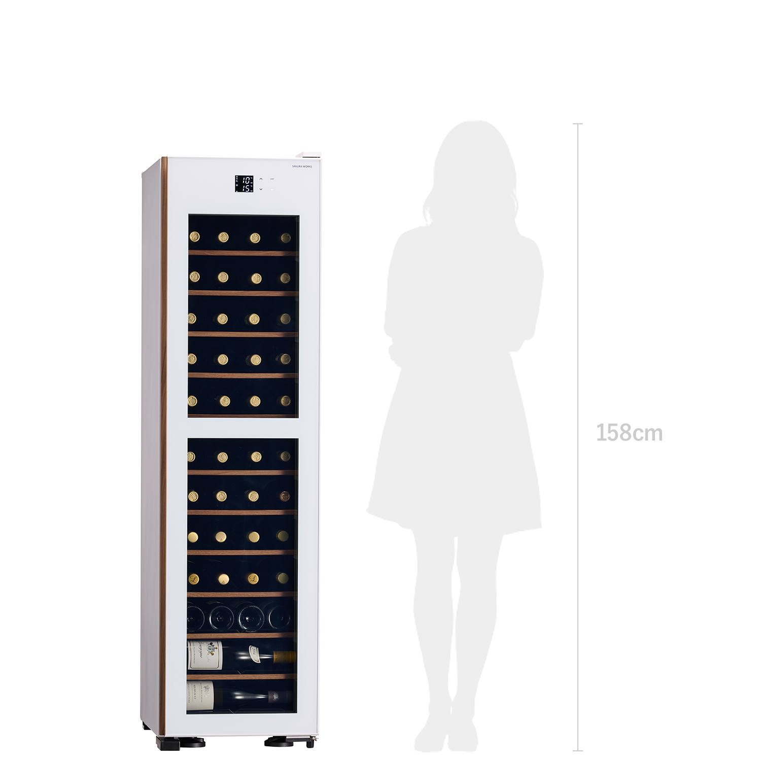 当社で最も人気を得ている38本収納タイプのアップグレードモデルとして、新たな魅力を備えたタワー型セラーが誕生しました。優れた省スペース性はそのままに、高さを活かした構造で50本のボトル収納を実現。限られた空間でもスムーズに設置できます。洗練されたデザインはどんな室内のインテリアとも調和し、くつろぎの空間を演出します。