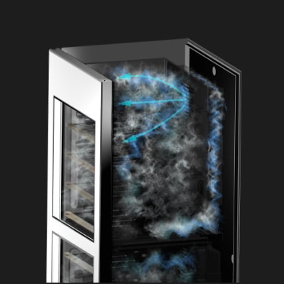 高価なワインも保管するなら、ワインセラー内の温度ムラひとつ妥協できません。氷温®M2シリーズは特許技術をさらに改良することで、これまで下室の最下段部分で生じていた庫内の最大温度差を軽減しています。たくさんのワインを保管しても温度が一定に保たれるので、熟成もこれまで以上に安心です。