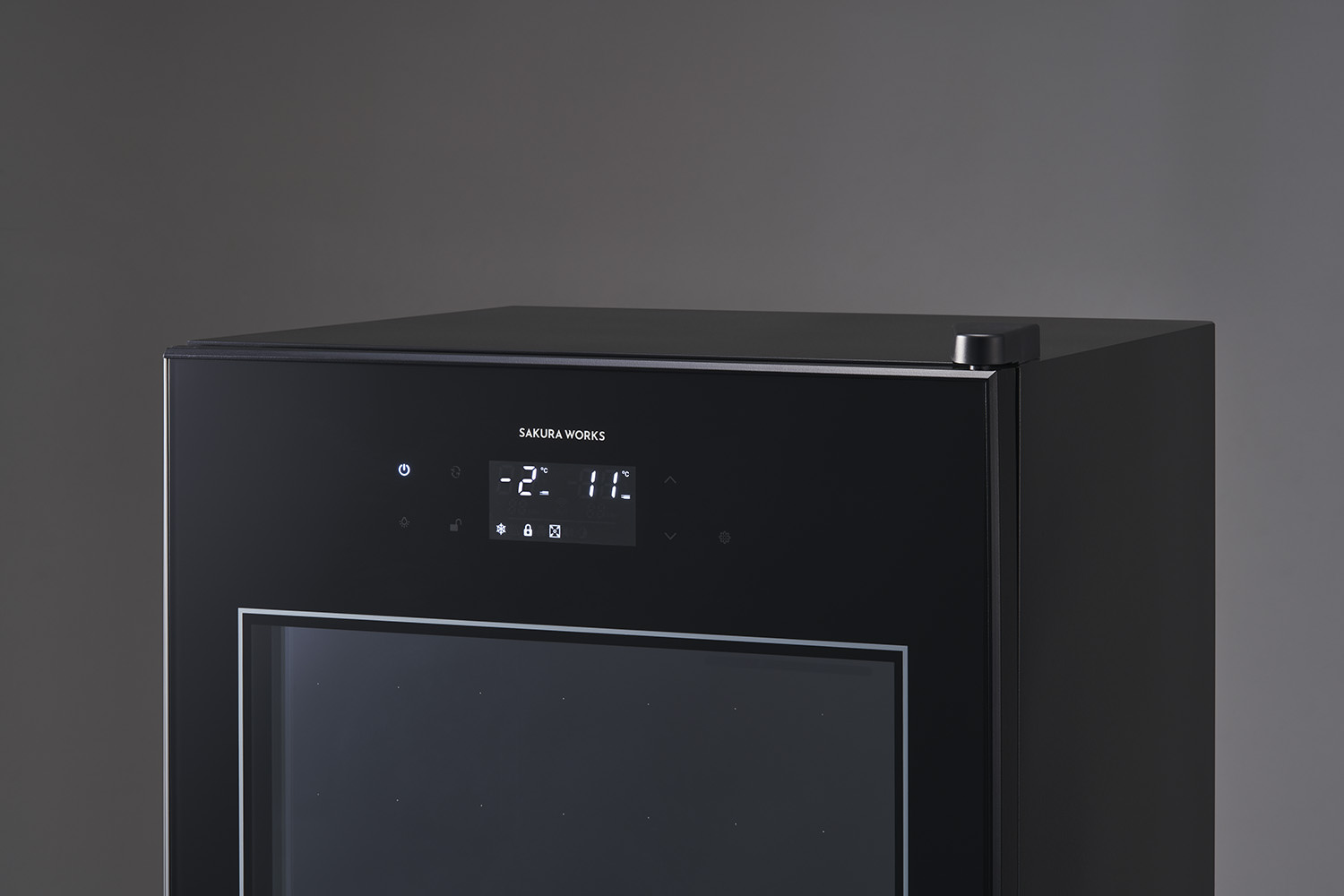 氷温®は、さくら製作所の中で初めて―2℃設定を実現した製品です。温度の下限が引き下げることに加え、コントロール性能も重視し、設定温度と液体温度のブレは0.1℃以下に抑えられています。設定可能温度は上室が―2℃から22℃、下室が0℃が22℃と、日本酒とワインの使い分けに配慮した設計です。