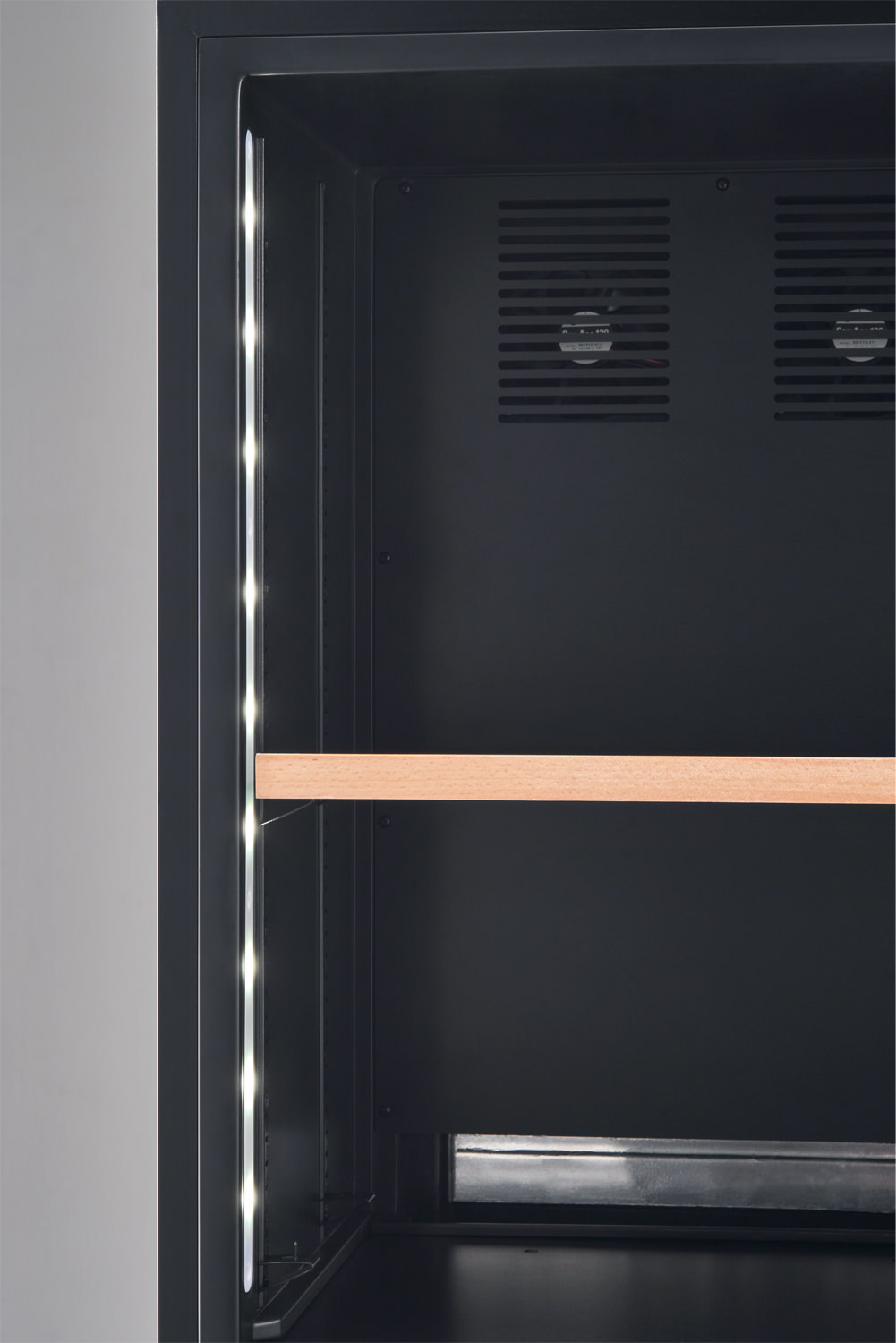 ボトルを縦置きで保管すると、両サイドに縦配置したLEDライトがお酒のラベルをライトアップするようになっています。白色系と暖色系、2つのLEDを搭載しているので、お好みに合わせてスイッチ一つで色味を変えることができます。暖色系だとワインのカーヴのような、白色系だと日本酒のショーケースのようなディスプレイ。お酒を配列する楽しみと、上質な雰囲気を感じていただけます。