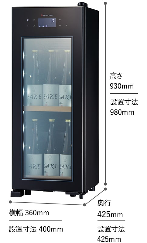 さくら製作所ラインナップの中で、もっとも広い範囲で温度を設定できます。最低温度は0℃、最高温度は22℃で、1度刻みで設定が可能です。ドリンクストッカー、ビールクーラーとしてはもちろん、低温貯蔵の必要な日本酒を保管する日本酒セラーとしても利用できます。