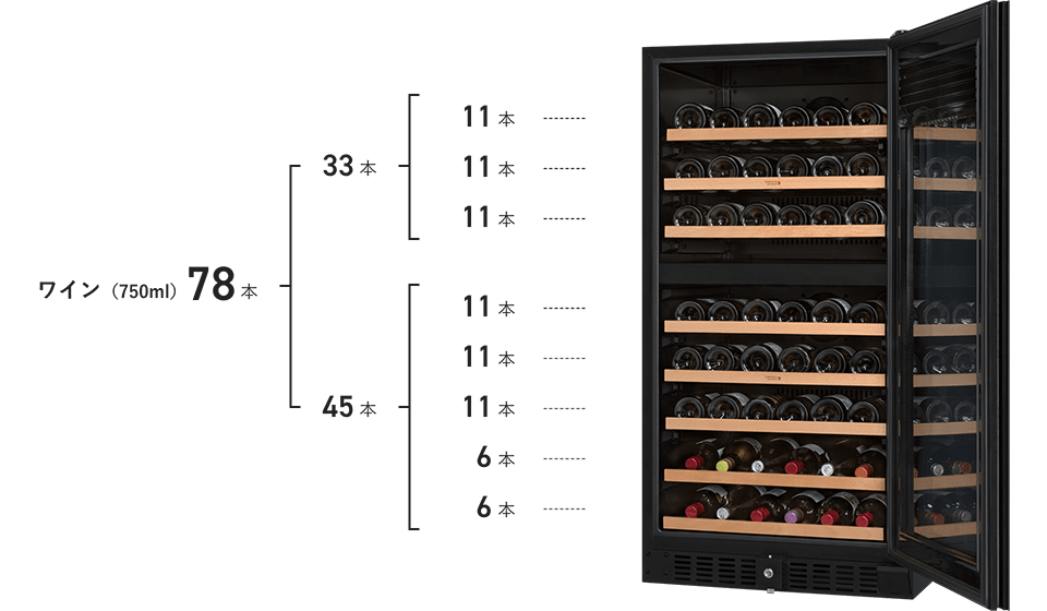 | 収納本数(ワイン) | 78本(上室33本 下室45本) | |