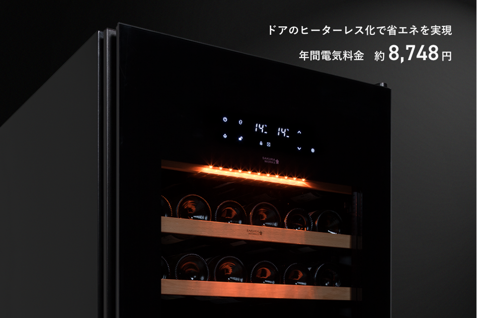 SV78でかかる電気代は、年間で約8,748円(※)です。効率的な冷却サイクルに加え、ドアのヒーターレスを実現することで、製品の消費電力を抑えています。他社製品では年間で2万円近くの電気代がかかるセラーもありますが、当社ではドアヒーターを不要にしたことで静かさと省エネを両立させています。