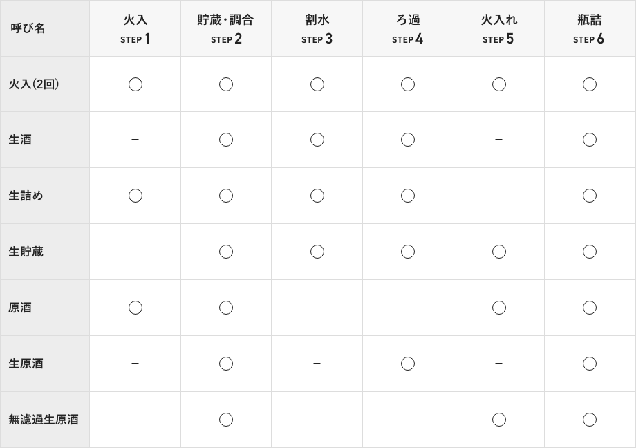 日本酒は、火入れと呼ばれる出荷時の加熱処理の有無や、そのタイミングによっても分類が分かれます。火入酒、生酒、生原酒など、知っておくと風味の手がかりや希少性などを把握しやすくなるでしょう。また、酵母の仕込みや発酵の段階での違いによっても風味の特長が変わります。出来上がった新酒を搾るときに出てくるお酒の順番にも名前が付けられていて、同じ新酒でもそれぞれに味や香りの違いがあります。