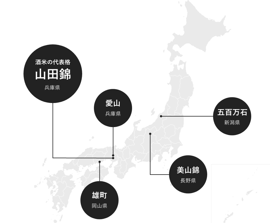 使用しているお米の種類も、味をイメージする参考になります。一般的に酒米の代表格とされる山田錦は香味が良くて雑味が少なく、大吟醸酒に適していると言われています。ほかにも、五百万石、雄町、愛山、美山錦など、様々な酒造好適米があります。食用のお米から造るよりも品質の高い日本酒を生み出しやすい酒造好適米ですが、その生産量は米全体の1%ほどととても貴重です。
