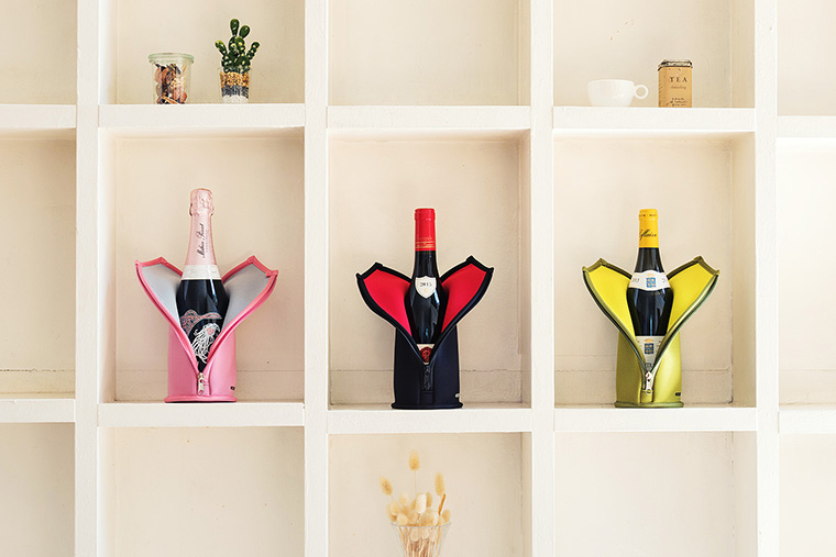 「ワインは適温でもっと美味しくなる」をコンセプトに開発したワインスーツ。液晶技術で培った蓄冷材料を開発していた、シャープ株式会社(大阪府堺市 会長兼社長 戴正呉)との共同開発で生まれた商品です。水をベースにした安全に配慮した蓄冷材は、ワインの適温をキープする製品として、多くのワインラバーにご愛顧いただいています。
