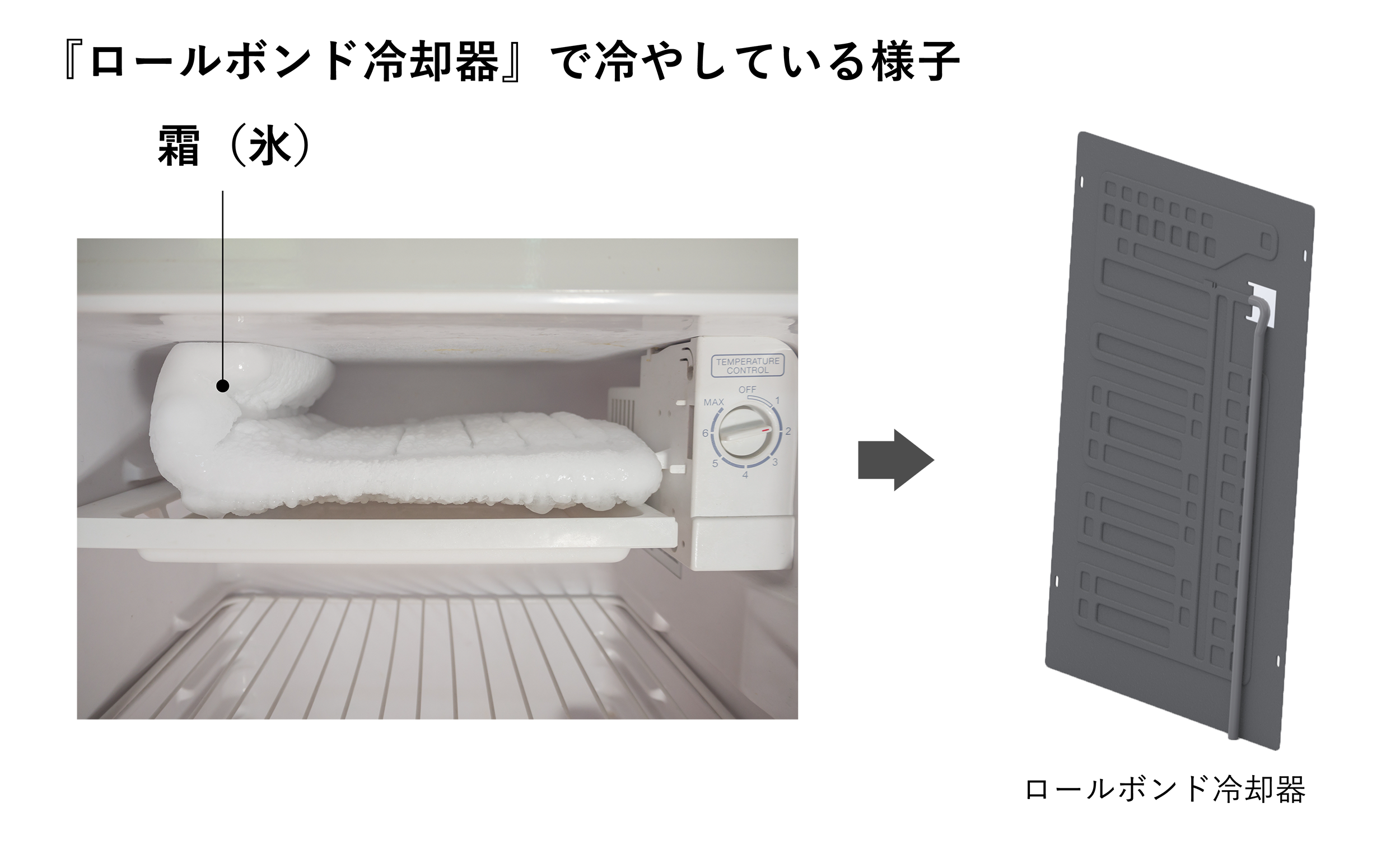 まず、1970年代に冷蔵庫の主流として使われた、アルミニウムの板を貼り合わせた「ロールボンド(直冷式)」というタイプの冷却器。現在でもホテル客室に設置されるような「小型冷蔵庫」があると、氷を作る部分の板が「凍っている」のを見たことはないでしょうか?