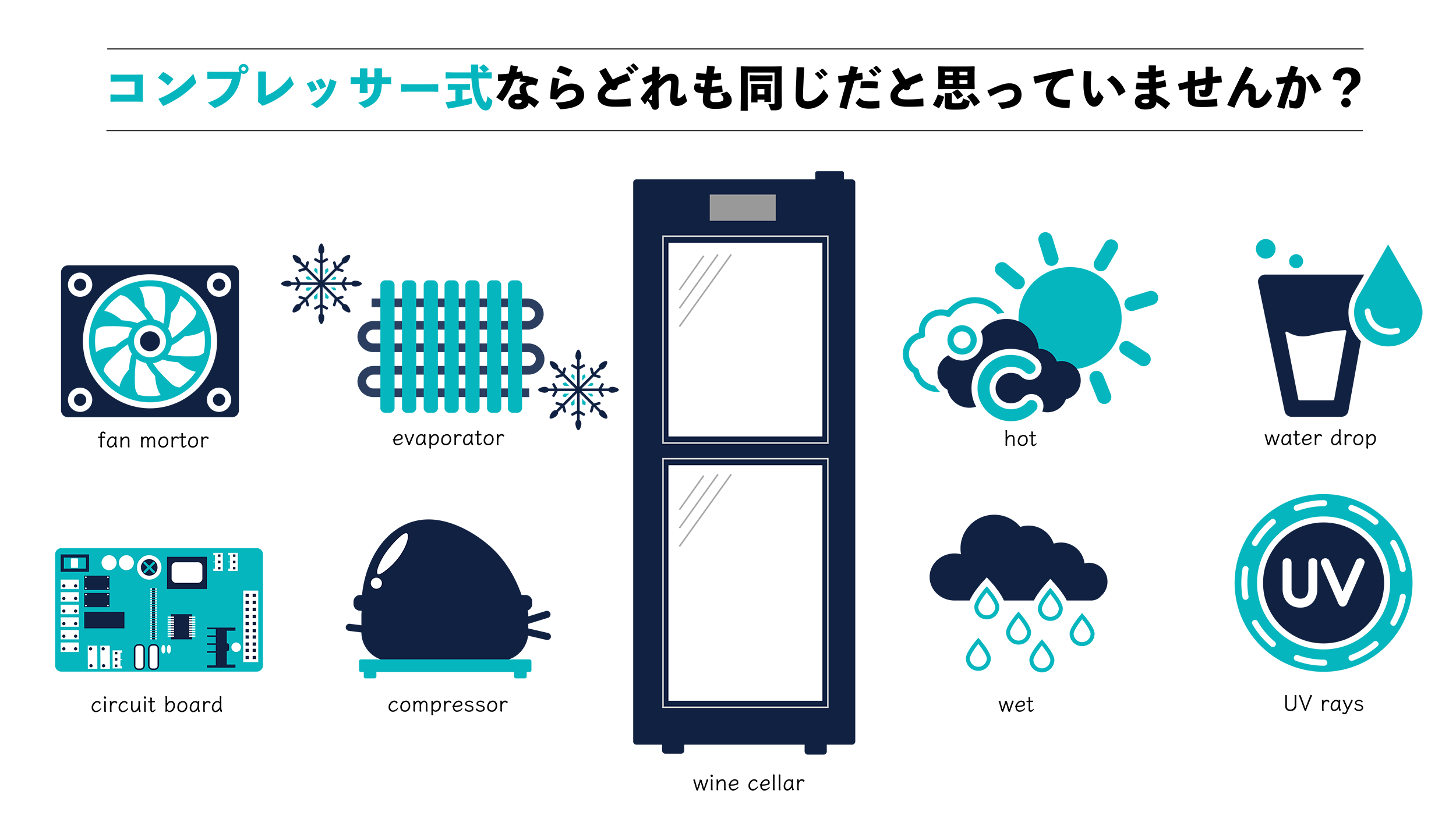 今回の記事では、「コンプレッサー式ワインセラーの違い」について解説します。同じコンプレッサー式でも、機種によって冷却構造に違いがあります。