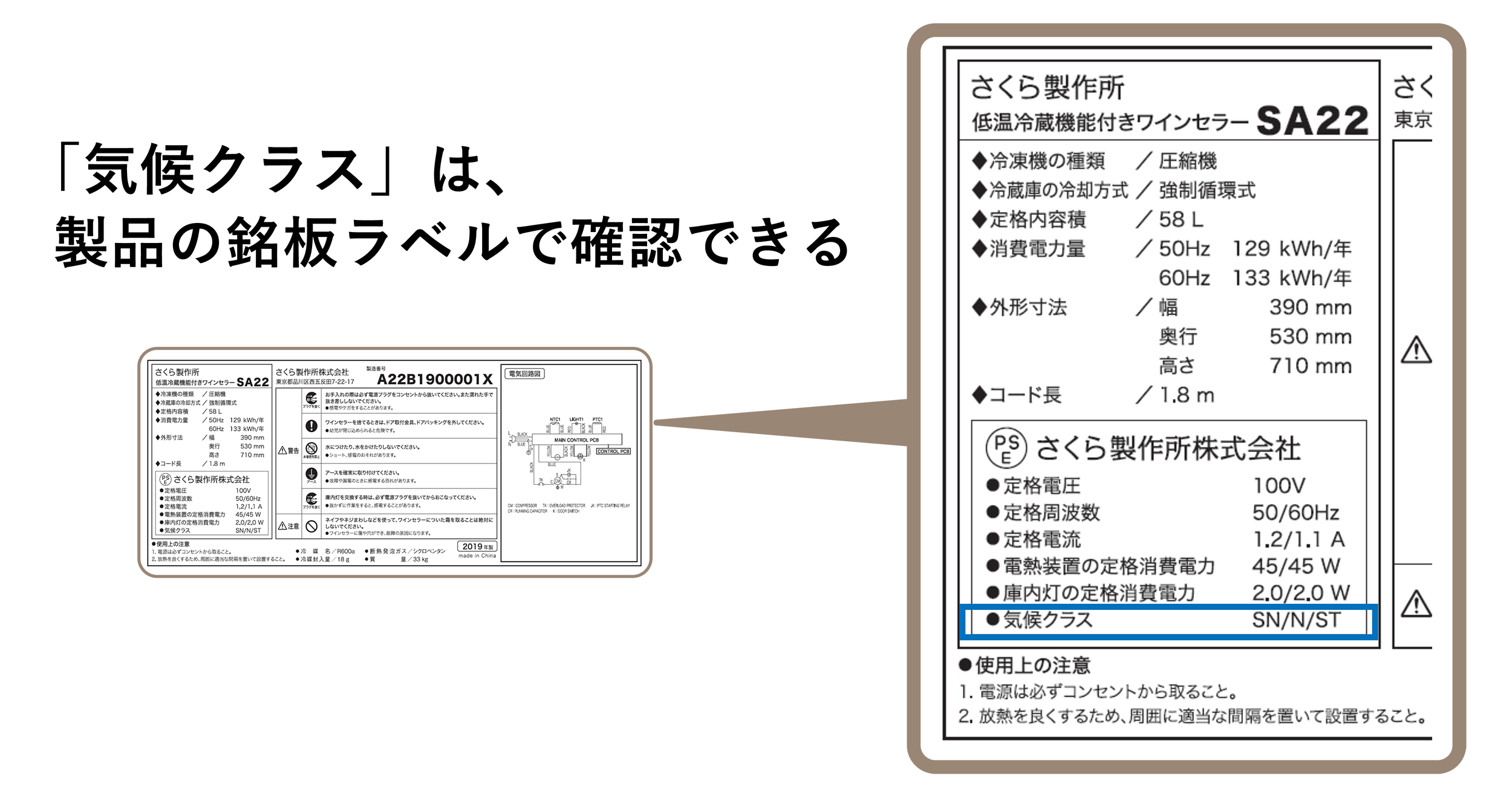 夏でも良く冷える「性能」の裏付け材料として、法律上の「気候クラス要件」を満たすことが最初のポイントです。ワインセラー等の冷蔵機器は、製品の安全性を満たす規格である法律(電気用品安全法 以下、「PSE」)を守って製造することが義務づけられています。その中で、「気候クラス